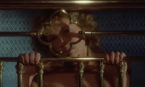 La Belle Captive is not an exception. A man around thirties, apparently working for some shadow entity resembling police, meets a little drunk girl who he considers a goddess on a local disco. Later that night, during taking care of so-called business matters, he stumbles at this hard to ignore lady in a rather unflattering state. She is lying on the centre of the road, in the middle of the night, likely with concussion and a tiny stream of blood over her pale long leg. After this odd encounter and pursuit to apparently save her life, the protagonist experiences a series of events overruling the linear perception of the known reality. Bad headaches and hallucinatory state predict a problem between mind and body, a gap between objective and subjective reality. An incoherent mixture of real and irreal occurrences, recurring places, items and persons, even the dead, symbolize ostracization from the outer reality. The (anti)hero has fallen a victim to a chain of bizarre events whereas his memory has locked him inside a somewhat virtual reality. To dub La Belle Captive as a silly adventure of a madman would be dishonourable in the wake of Robbe-Grillet´s oeuvre. The linear narrative axe has been raised into vertical position. We are no longer perceiving events logically according to order of things based on cause and effect. Indeed, we are prisoners of protagonist’s conscience, mind and memory along with him, riding in his private inner world on a surreal elevator against the time, space and laws of causality. The collapse of parallel worlds into one creates a conundrum which viewers are invited to solve or to be devoured by it. Naturally, all this happens with constant references to eccentric paintings of Magritte. Robbe-Grillet´s cinematic career is mostly known thanks to writing credit for the film Last Year in Marienbad, directed by legendary Alain Resnais. However, he established his career on idiosyncratic, provoking, dazzling and erotic works of his own similarly to Walerian Borowczyk. The transition of the signature style from paper onto celluloid happened quite naturally. Despite the melting of the main narrative into one storyline echoing the past and future at the same time, La Belle Captive prevails by the aforementioned incertitude thus underlining the expansion of the dubiousness. The pulp like beginning introducing femme fatale soon turns into a detective story. Odd investigation leads into asylum where the story slides imminently close to a ghost story genre. The kaleidoscope of constant variations along with the recurring motifs forms an antagonistic logic-defying structure.